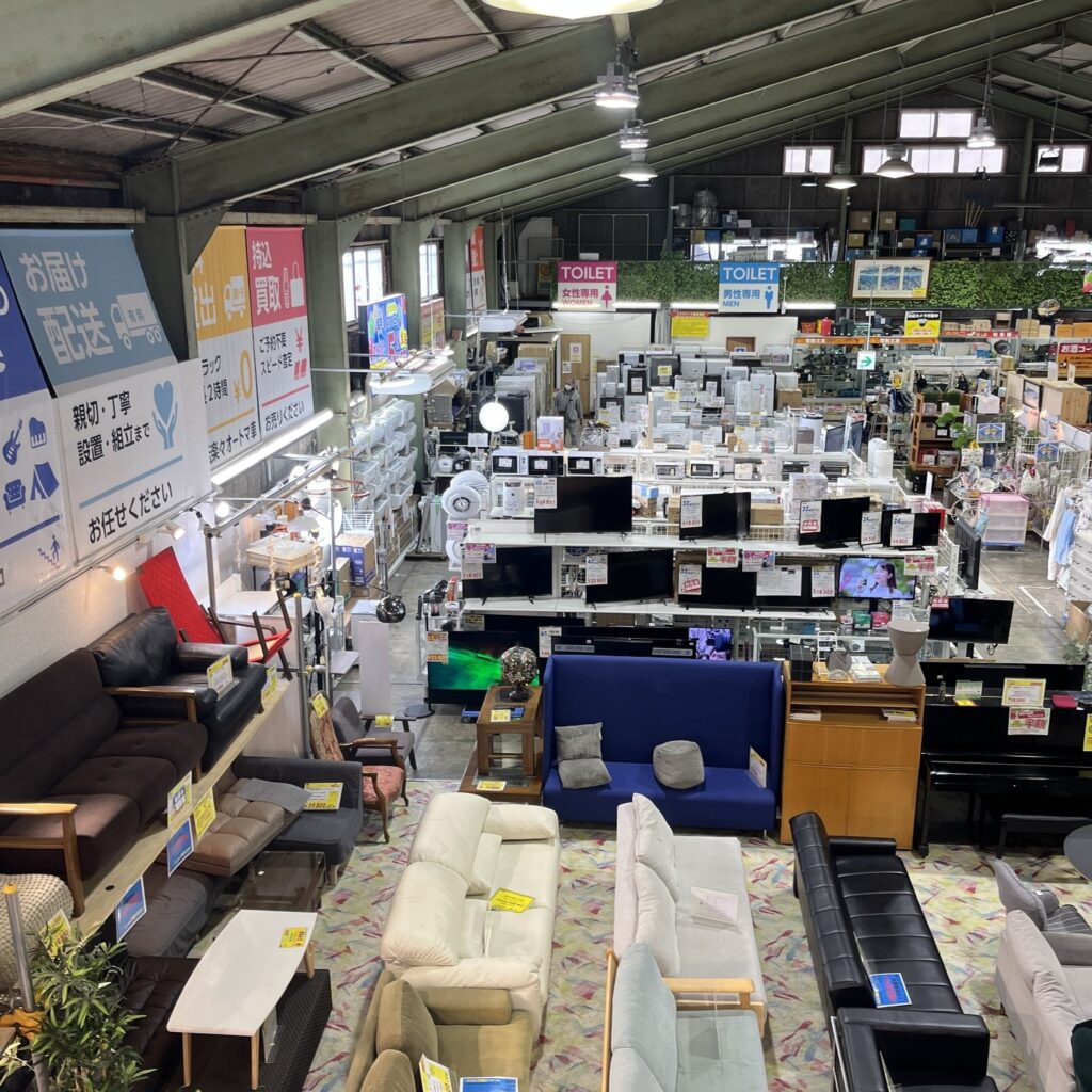 総合リサイクルショップの強みである取扱商材の豊富さで家具・家電などの家財品、お酒、衣料やブランド品、貴金属、自転車や業務用品まで買取を行っております。