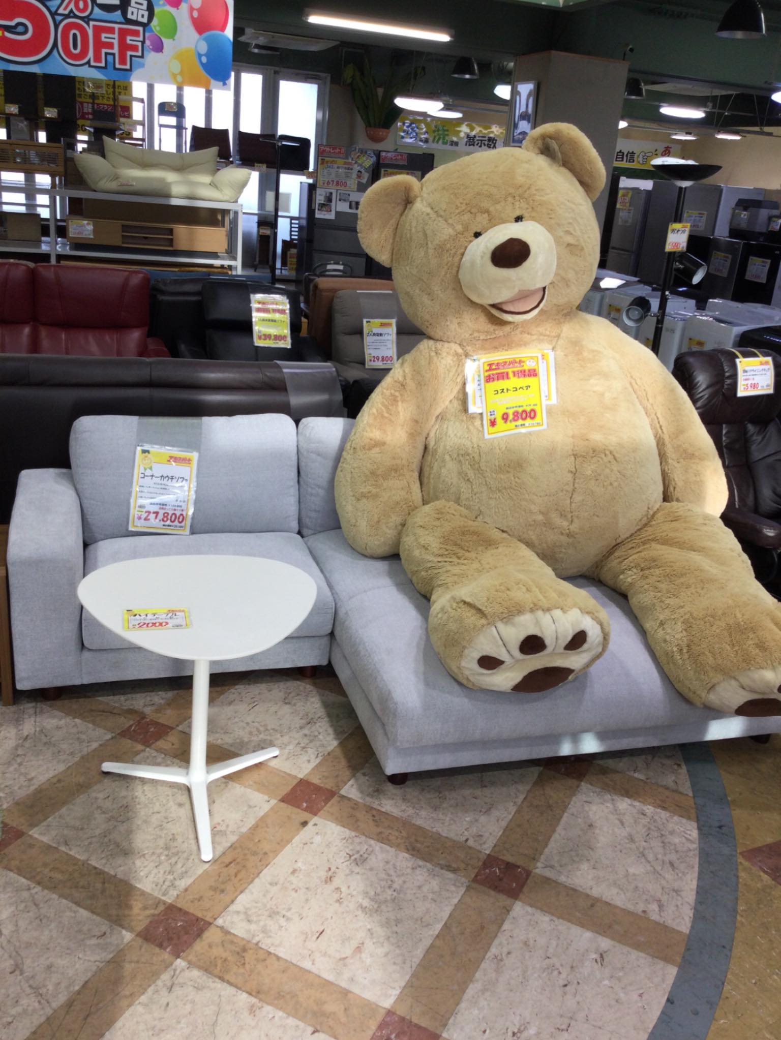 でっっっかい🧸くまの人形が座れちゃうくらい大きなソファ販売中!