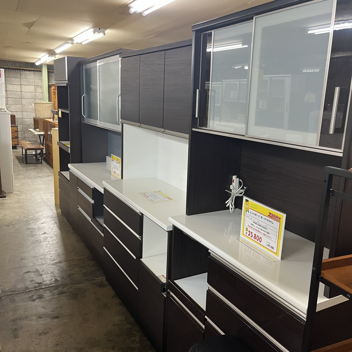 レンジボード・キッチンボード・キッチン台・食器棚など、毎日の暮らしに欠かせないキッチン家具を常時豊富な在庫で取り揃えています。サイズ・デザイン・収納力まで幅広く比較でき、実際に見て選べるのが当店の魅力です。