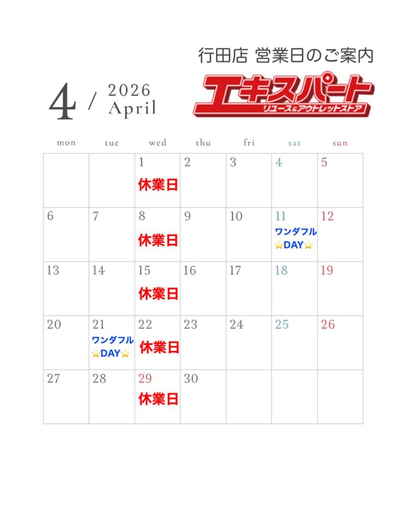 4月営業日のご案内🗓️