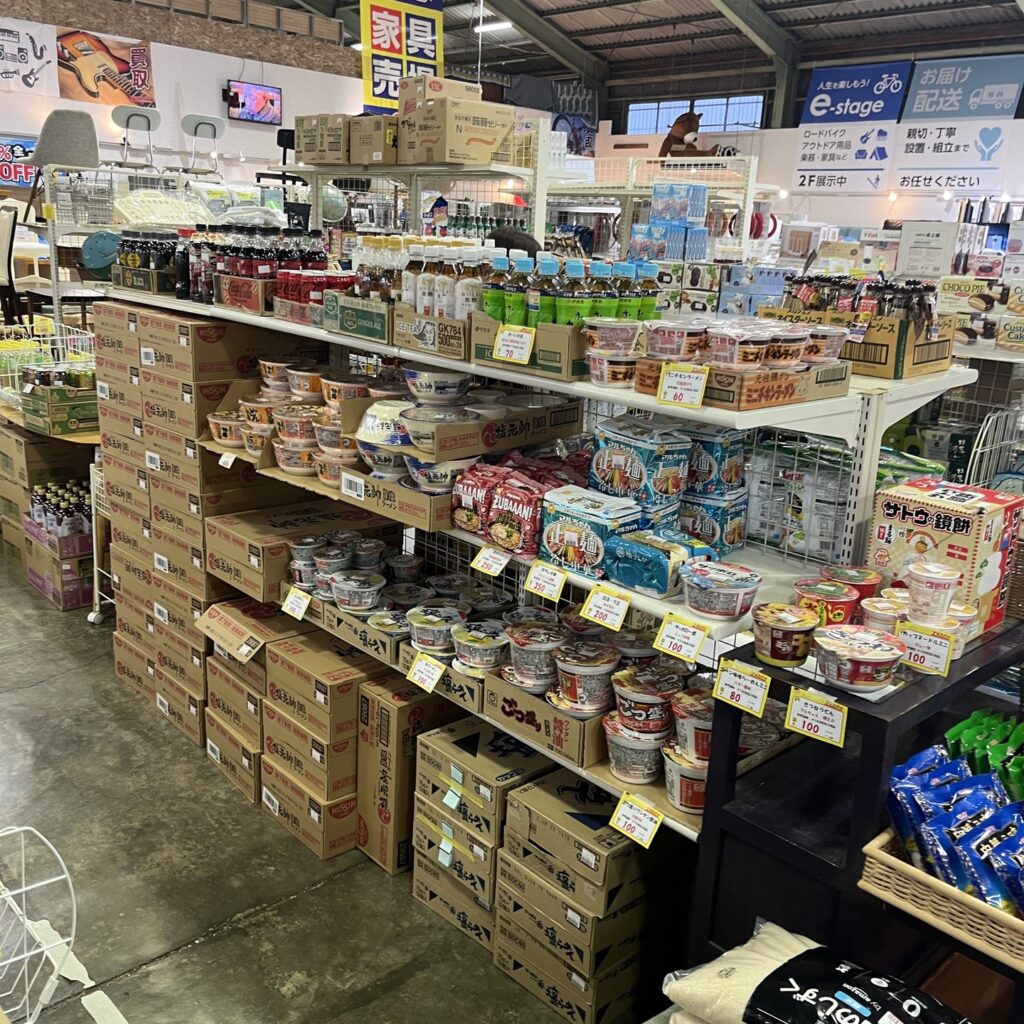 エキスパート戸塚原宿店は、家具・家電・雑貨だけでなく、実は食品も大量に取り扱っている総合リユース&アウトレットショップです。思わずカゴに入れたくなるような商品が並び、宝探し感覚でお買い物を楽しめます。